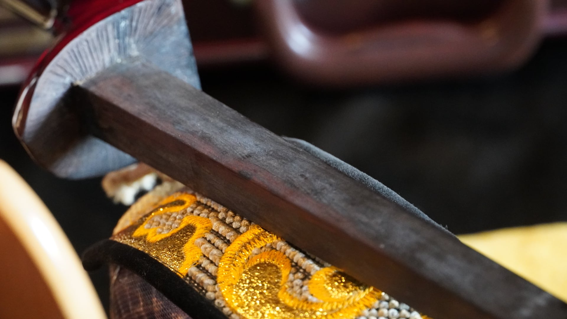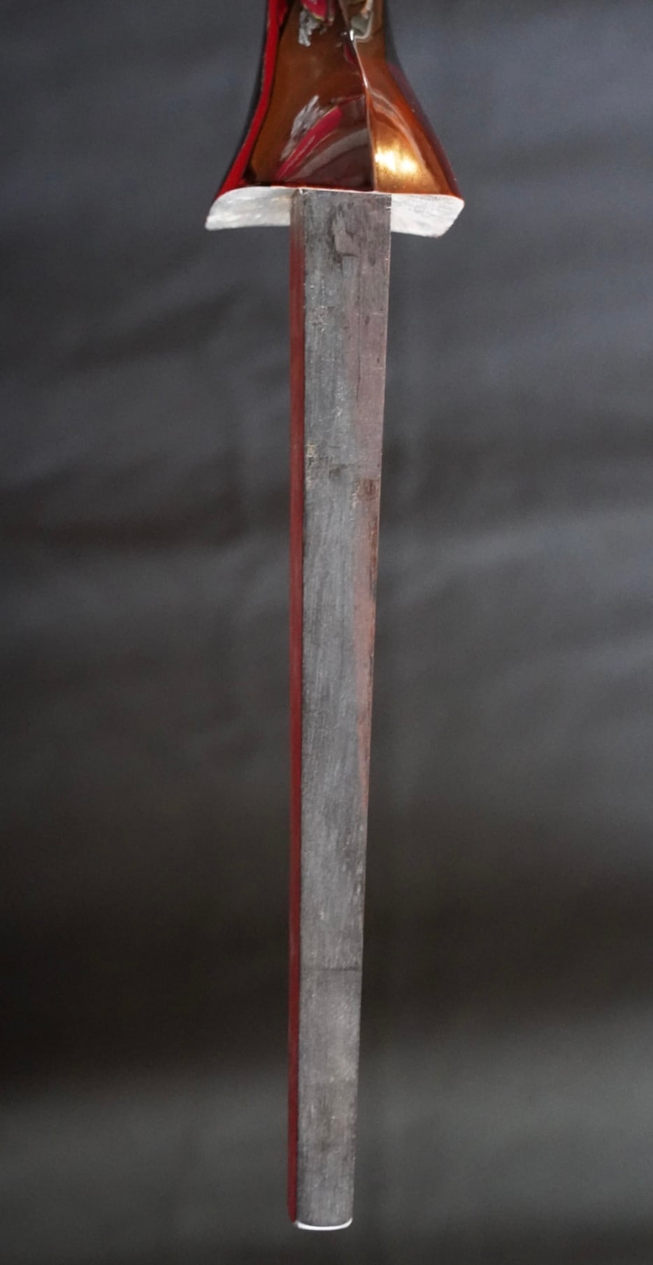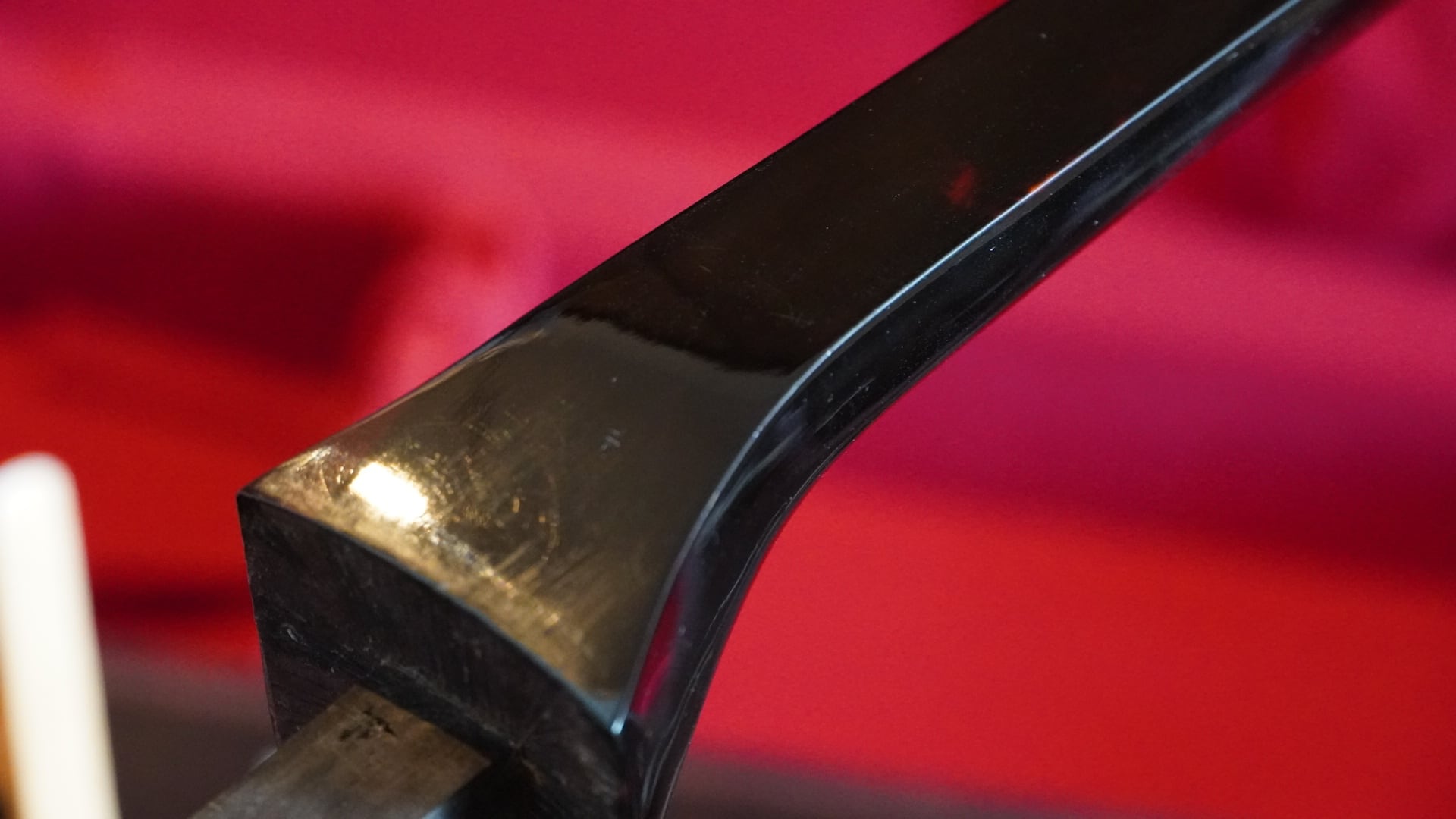 那覇市開南通りに名工の店が建ち並んでいた昭和の黄金時代。若き頃の名工銘苅春政氏が弟子入りしたのが有名店として知られていた仲本三味線店であった。その仲本の非常に珍しい知念大工型三線。現存の作品が少なく又珍しい知念大工型とあって大変貴重な個体です。。黒塗りからスンチー塗りに塗り替えられた以外は棹に変更や修復等なく状態は正常。塗りは使用感や古傷がございます。捻り歪みも少なく状態は正常。全体的に稍太棹で凛々しい印象の作り。天中央部と鳩胸に入る角の線が非常に特徴のある造りです。丸みと鋭さが際立った爪の流れにも御注目ください。縦型で太めの芯に確認できる八重山黒木ウジラ模様や材の経年変化した色味も味わい深いため、是非このままの状態で変更することなく使用されてください。カラクイ回り正常。かなり古い時代のつくりの胴に、昔の人工皮張りは九分張りの高音の音色。実に驚くほどよく響きます。付属のハードケースは当時の物ですので、使用感や汚れがございます。非常に貴重な仲本三味線店の知念大工型。この機会に是非お買い求めくださいませ。https://ameblo.jp/34doumakiya/