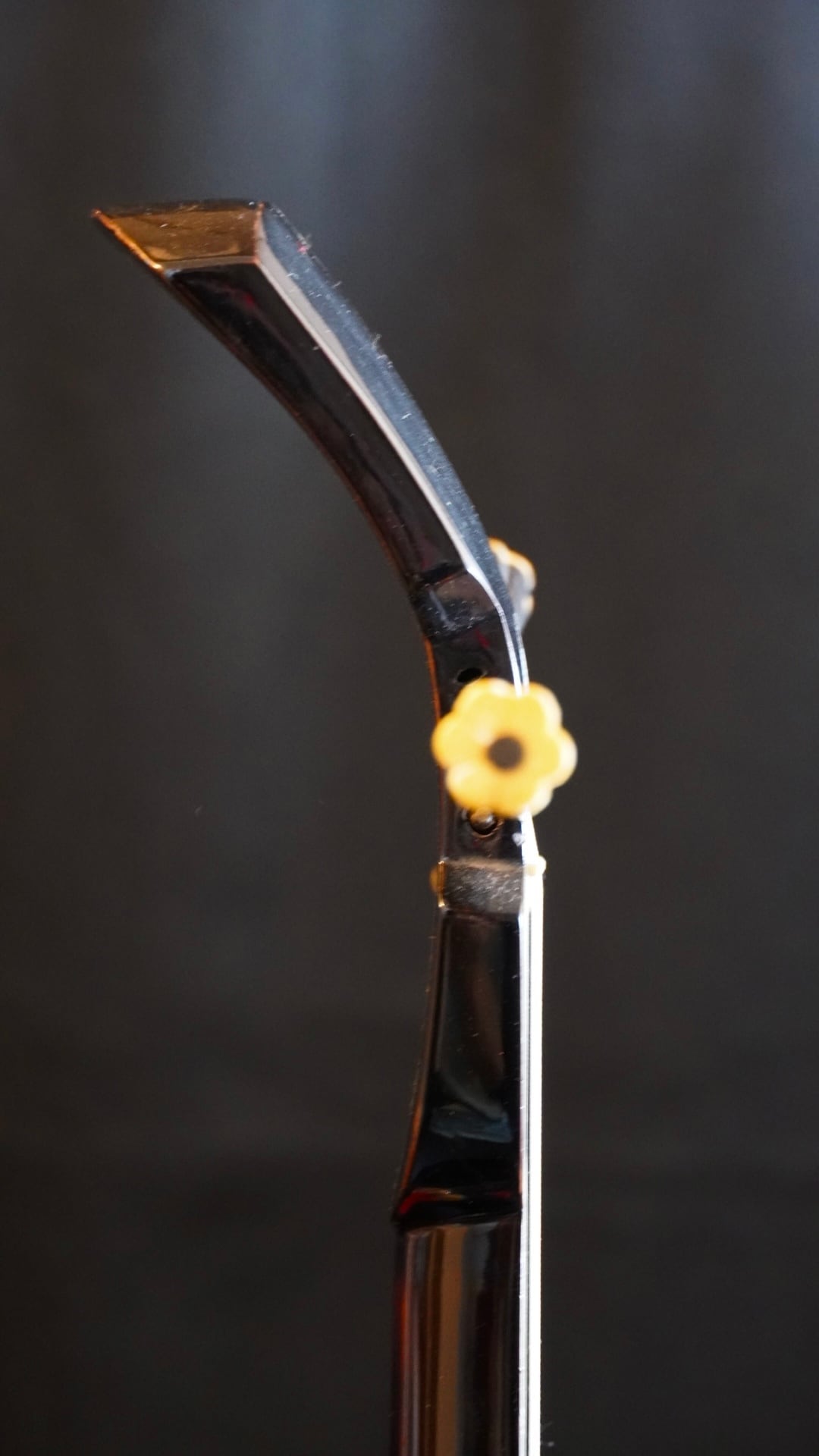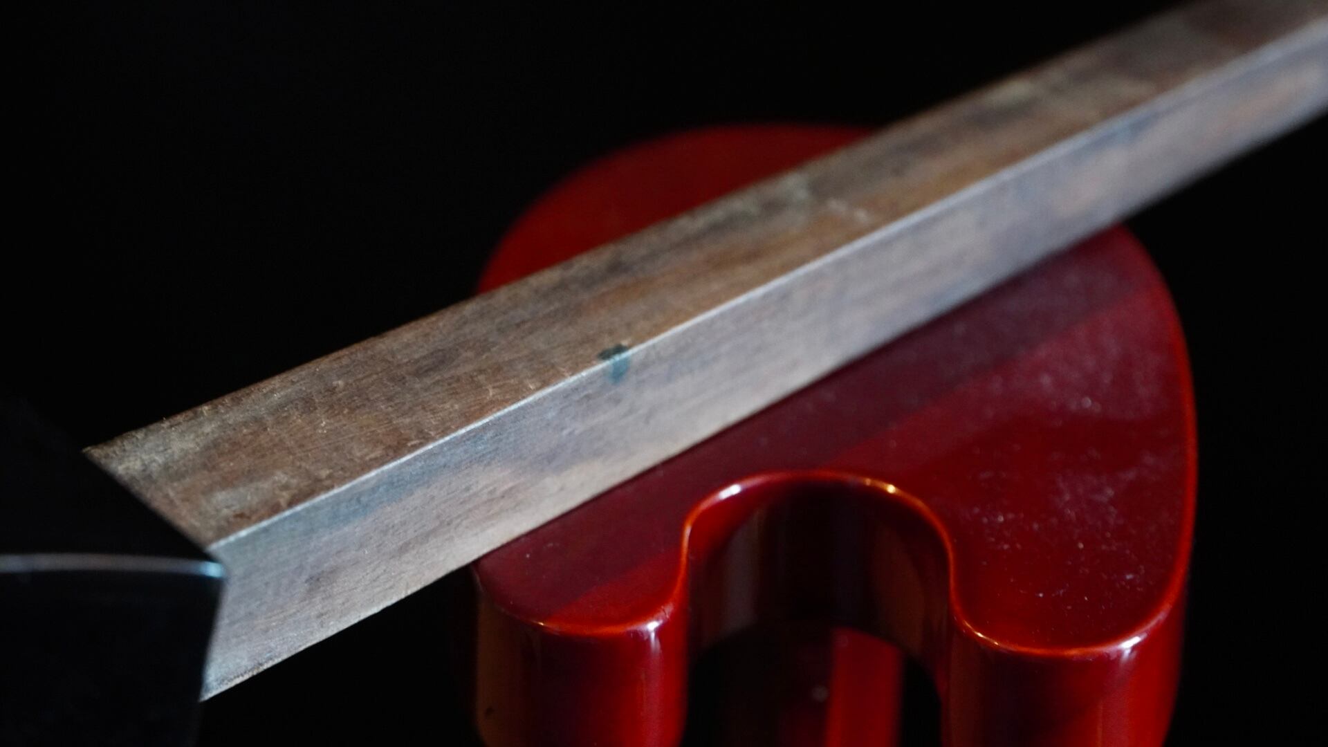 琉球政府時代、芯に一九五一年二月十日神屋 の記し。こちらでも調べましたがここにある'神屋'は何を意味するのかを特定することはできませんでした。野長一尺五寸六分五厘の戦前寸法。一見すると黒木以外の材に見えますが正真正銘の沖縄黒木です。爪裏に黒実部分とウジラ斑点模様などが確認できます。戦前寸法のため元々の芯長が現代型よりも短いため、後年芯の先端猿尾に黒木材で数ミリほど足したことがわかります。チラ、鳩胸、芯、厚みの薄い美しいチラ側面と曲線などからも、当時の名工の作であることは誰もが認めるものでしょう。棹に捻り無し。カラクイも当時の物が装着。塗りにダメージあり。また画像4枚目の赤印した部分に亀裂が見られますが、演奏可能であり、楽器の性能として致命的なものではありません。個人的には現状の状態でのご使用と保存をお勧めしますが、気になります方は塗り替えをされてください。両面本皮共に破れあり。以上、現状販売となります。※本体のみの販売です。メンテナンスは落札者様でお願い申し上げます。'神経質な方'や'ヴィンテージ楽器にご理解のない方'のご購入はお控えください。またご購入後に他三線屋で現物の確認をさせる行為等は、他店舗様の業務の妨げになりますのでお控えください。ノークレームノーリターンです。https://ameblo.jp/34doumakiya/