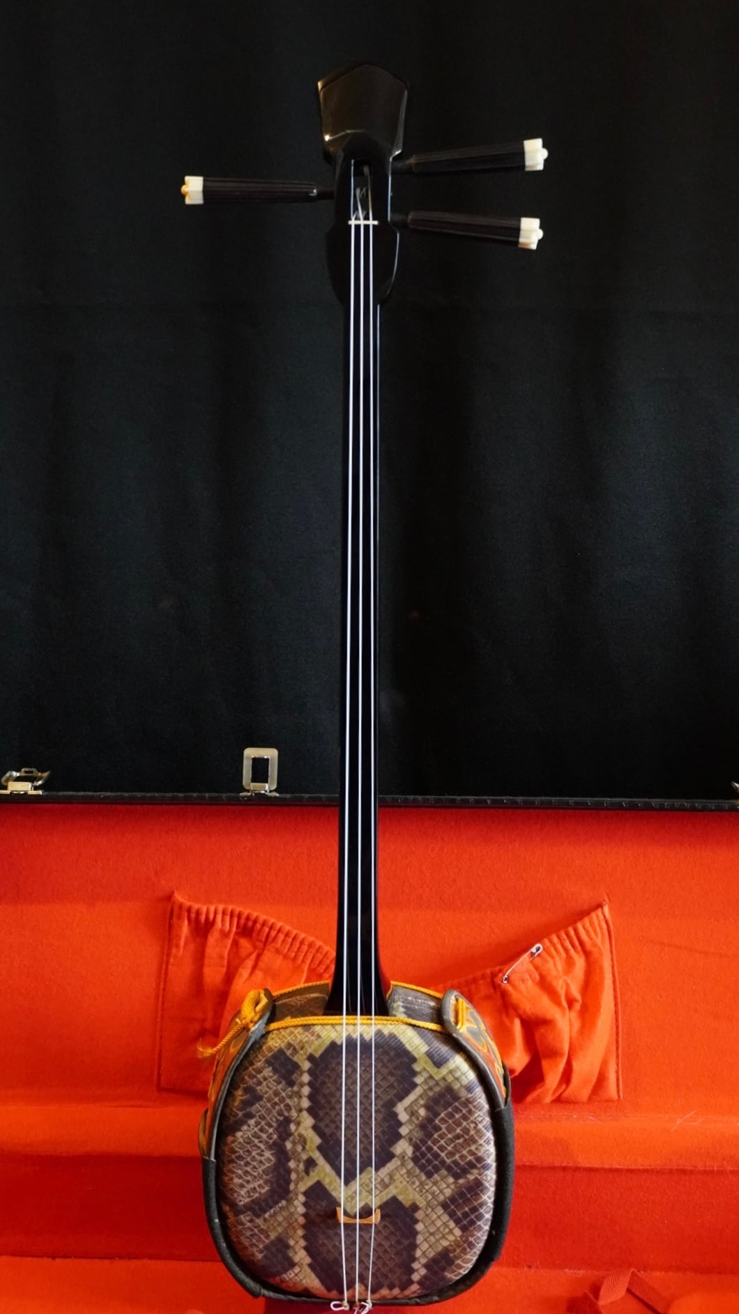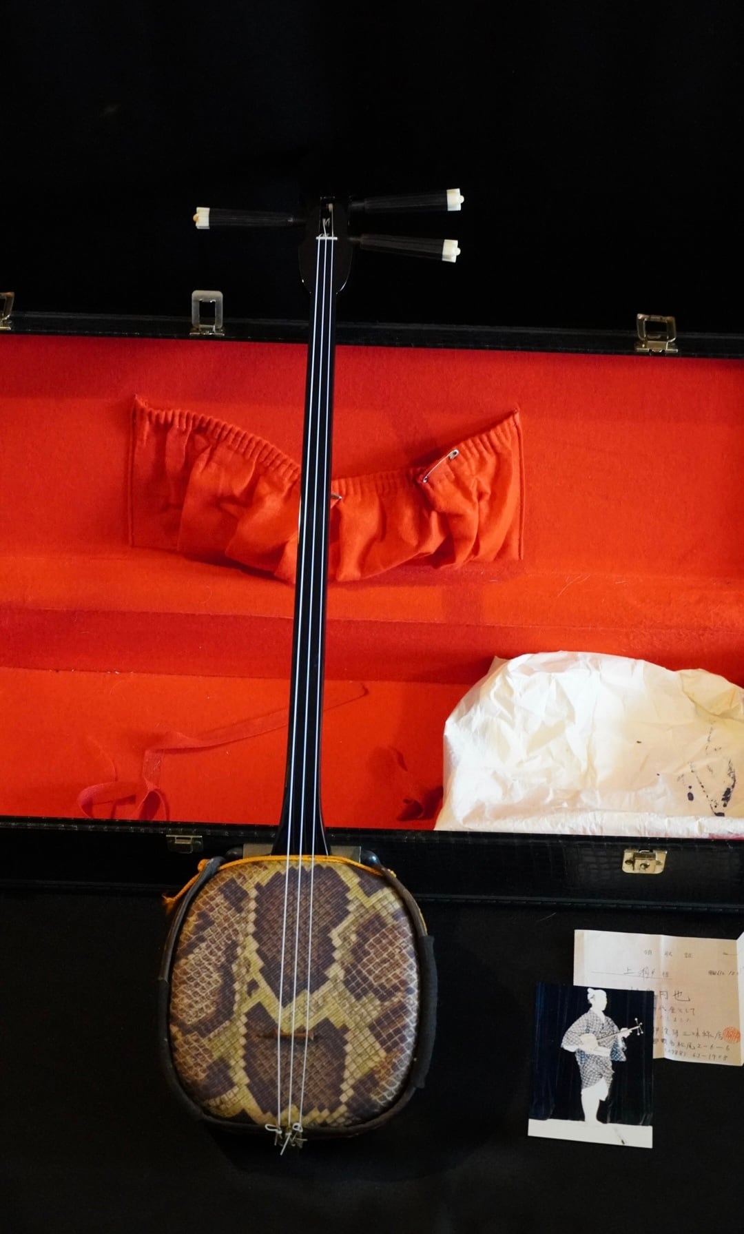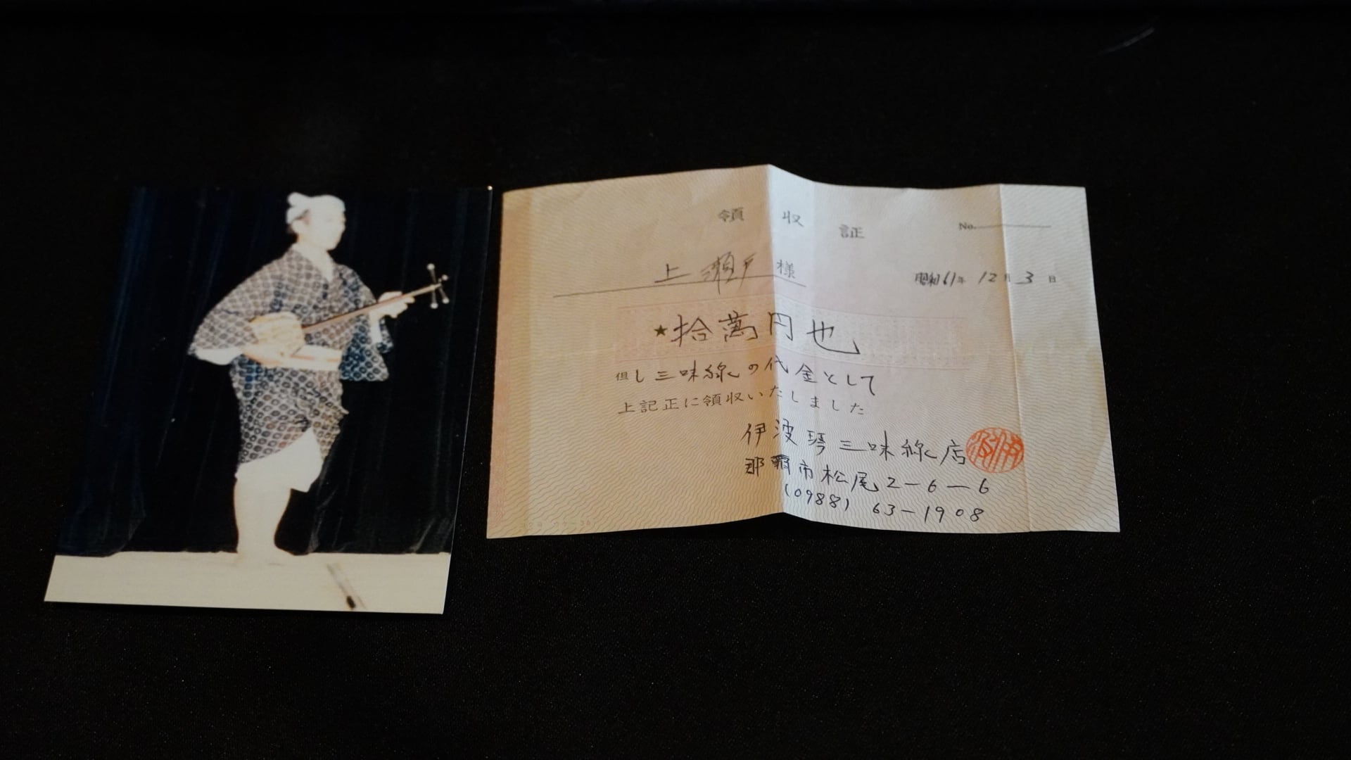 ご自身が今お持ちの愛用三線と、ケース内にある付属品その他諸々が、いつか誰か他の人手に渡るという事をリアルに考えたことがあるだろうか。今回ご紹介の三線はそのような事を深く考えるきっかけを私に与えてくれた。前所有者瀬戸氏が昭和61年12月3日に那覇の名工で片腕の三線職人として有名な伊波義雄三線屋に一丁の與那城を注文し誂えた。八重山産四つ割り黒木を預けて作られた三線。当時総仕上げで十万円だったことが伊波の領収書から知ることができる。勤務地の東京で使用するため両面共人工皮張りを伊波が手掛けている。八分張りのなんとも心地よい音色!非常にバランス良く張られています。型は実に昭和感のある與那城型で、中型の生真面目で落ち着きと寡黙な雰囲気が作風にも表れているといえよう。伊波義雄晩年の作。日付も確認できるものとして昭和三線歴史の中でもかなり貴重な資料と言えます。このような形で残されたものはこの先見つかることはないでしょう。触れさせていただけたご縁に感謝申し上げます。こちらで調整させていただいたのはカラクイ取り付けと分当て調整。塗りは新たに施されたスンチー仕上げです。虹の輪天辺に自身の印として付けられた茶色の点印等も印象的です。棹の状態良好。勿論今後も末長く御愛用いただける作品です。今回のこの機会をご縁と感じる方にお届けしたいとの思いでございます。演奏用として又、家宝としても御所有を検討されて下さい。二丁入れケースも付属しますが、使用感や少々の汚れが見られますが、これも一つの証としてそのまま付属させていただきます。ゆうパックから送料込みで発送いたします。宜しくお願いいたします。https://ameblo.jp/34doumakiya/