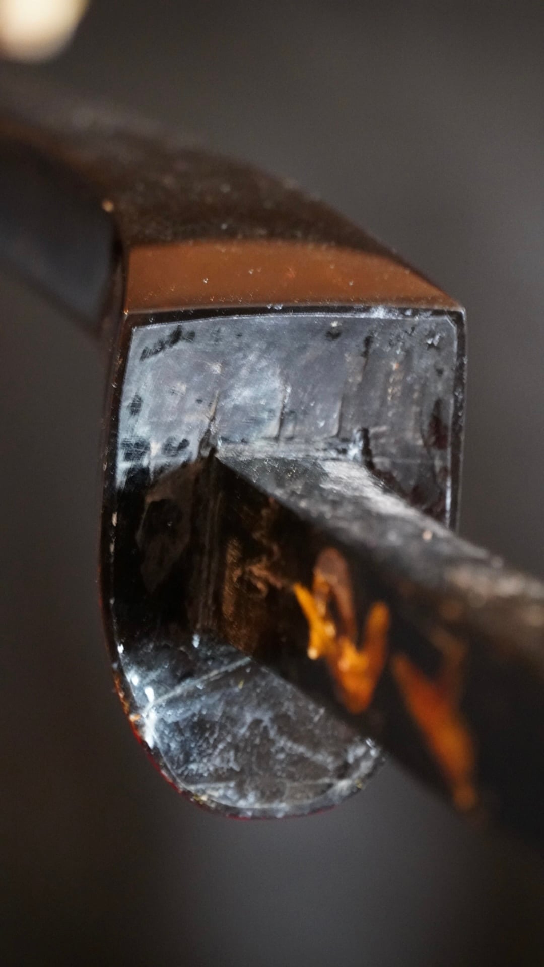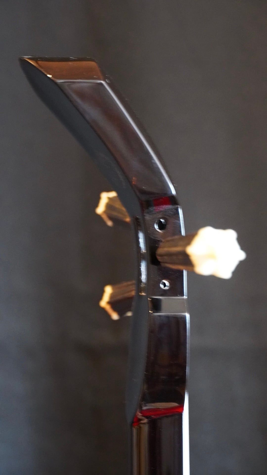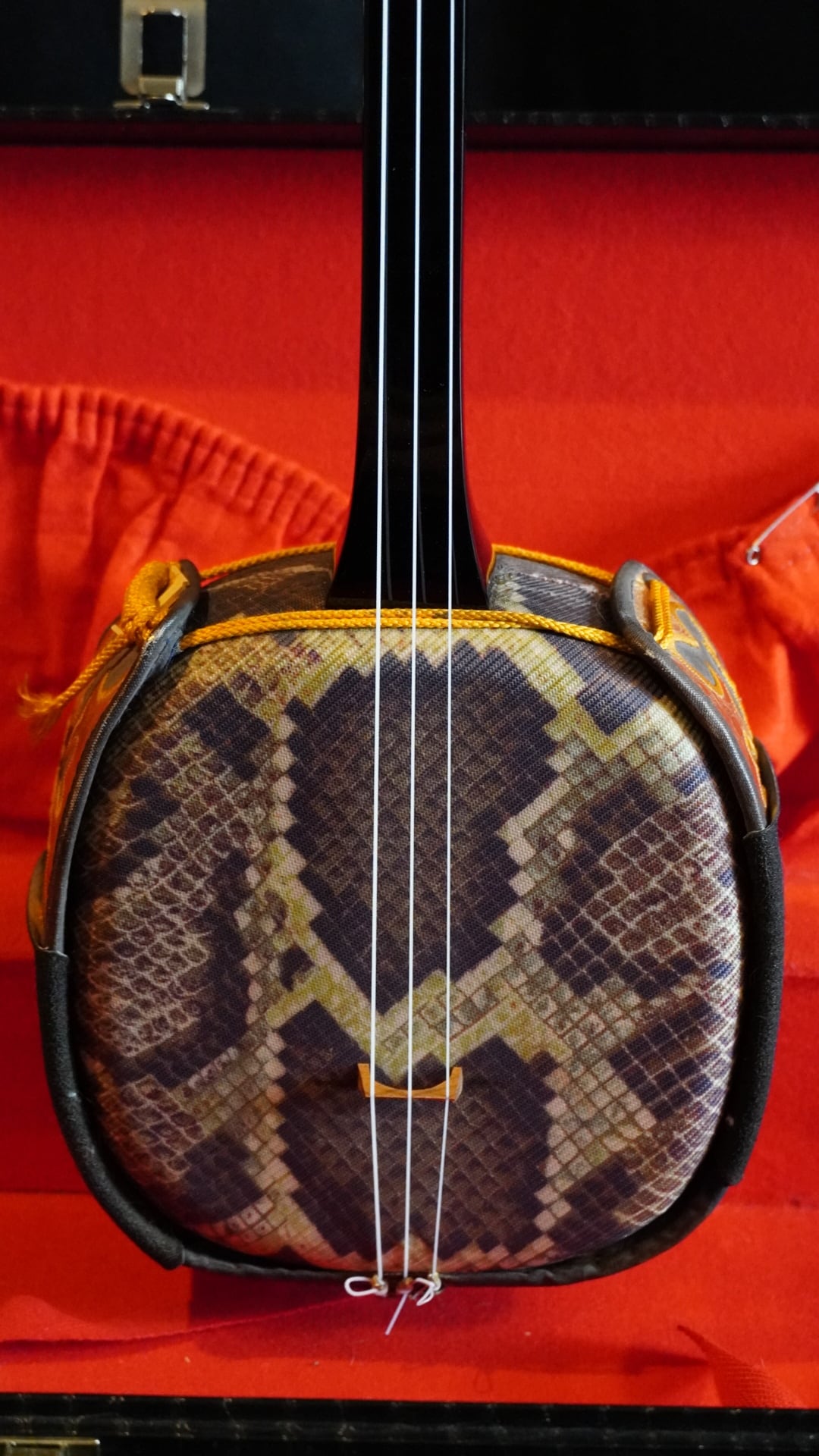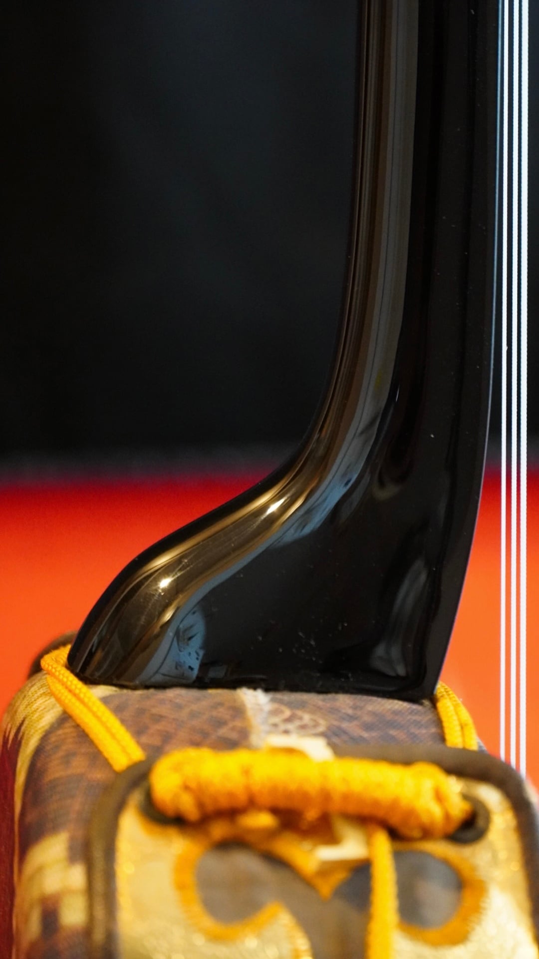 ご自身が今お持ちの愛用三線と、ケース内にある付属品その他諸々が、いつか誰か他の人手に渡るという事をリアルに考えたことがあるだろうか。今回ご紹介の三線はそのような事を深く考えるきっかけを私に与えてくれた。前所有者瀬戸氏が昭和61年12月3日に那覇の名工で片腕の三線職人として有名な伊波義雄三線屋に一丁の與那城を注文し誂えた。八重山産四つ割り黒木を預けて作られた三線。当時総仕上げで十万円だったことが伊波の領収書から知ることができる。勤務地の東京で使用するため両面共人工皮張りを伊波が手掛けている。八分張りのなんとも心地よい音色!非常にバランス良く張られています。型は実に昭和感のある與那城型で、中型の生真面目で落ち着きと寡黙な雰囲気が作風にも表れているといえよう。伊波義雄晩年の作。日付も確認できるものとして昭和三線歴史の中でもかなり貴重な資料と言えます。このような形で残されたものはこの先見つかることはないでしょう。触れさせていただけたご縁に感謝申し上げます。こちらで調整させていただいたのはカラクイ取り付けと分当て調整。塗りは新たに施されたスンチー仕上げです。虹の輪天辺に自身の印として付けられた茶色の点印等も印象的です。棹の状態良好。勿論今後も末長く御愛用いただける作品です。今回のこの機会をご縁と感じる方にお届けしたいとの思いでございます。演奏用として又、家宝としても御所有を検討されて下さい。二丁入れケースも付属しますが、使用感や少々の汚れが見られますが、これも一つの証としてそのまま付属させていただきます。ゆうパックから送料込みで発送いたします。宜しくお願いいたします。https://ameblo.jp/34doumakiya/