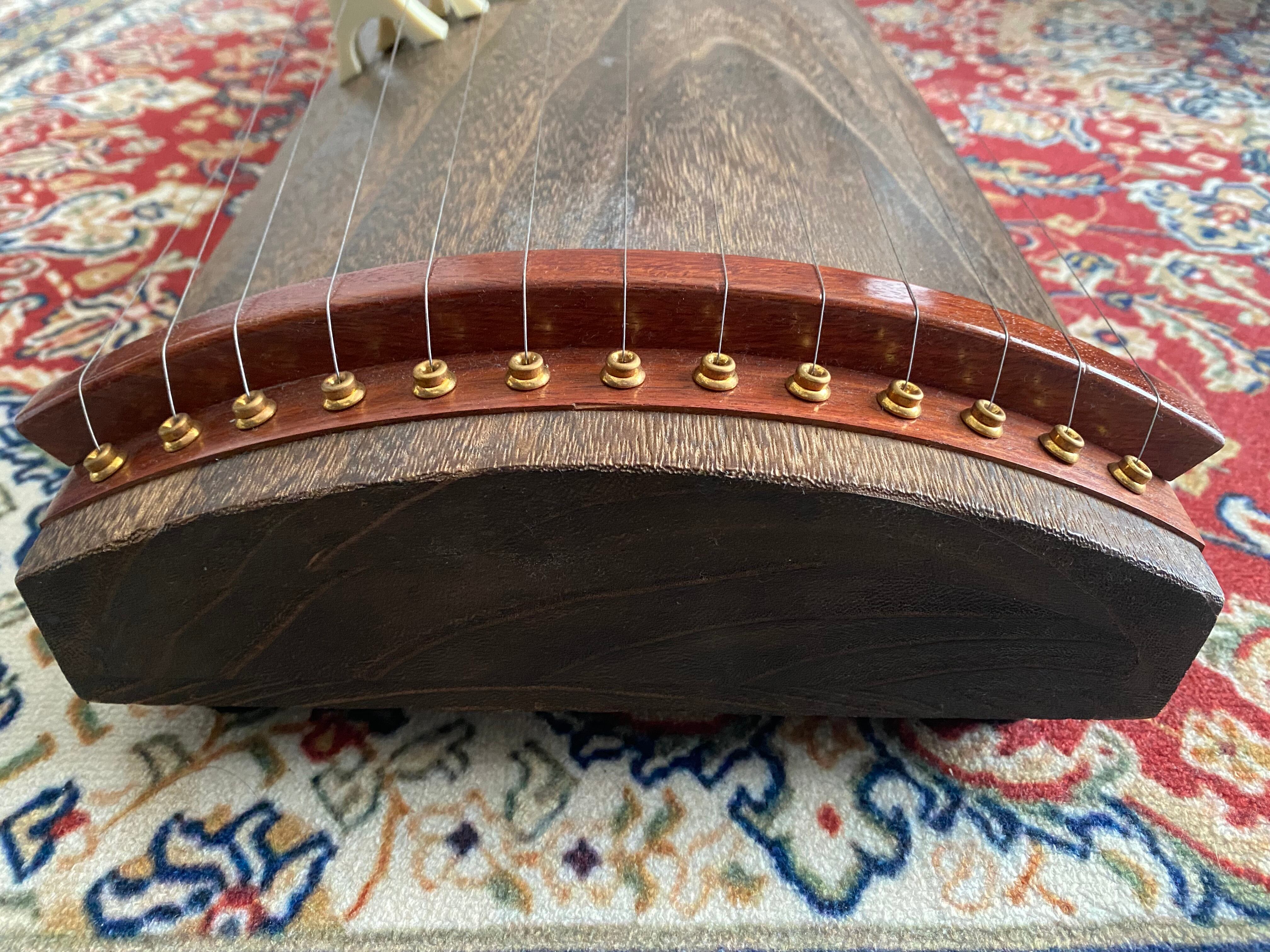 沖縄民謡用にセッティングされた琉琴。使用感少ないです。目立った傷などはありません。長さ約125cm 幅約25cm 高さ約10cm。弦の締め具合はサイドの六角のボトルで調整します。調整する工具はホームセンターで購入できますので、落札後揃えてください。予備のナイロン弦はあくまで付属としてお考えください。エアキャップで巻きその上からダンボール梱包して着払い発送での発送です。お取引の最後までどうぞ宜しくお願い申し上げます。https://doumakiya.amebaownd.com