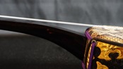 ある三線愛弦家の新築祝いの記念として贈られたこの久葉ぬ骨型三線は、贅沢なウジラミ斑点模様入りの黒木が使用され、平良さんらしい作風で製作された一丁。大事に保管されてきたため、完成時の当時の塗りはそのままだが、大きく目立つ傷はなく、程度も良い。棹の捻りや歪みなく正常である。チーガはまた'別'の三線屋で誂えたものであり、名工又吉の張りであることが確認できる。八分張りの本皮張りは当時のものだが、まだまだ十分使用に問題ない。この名入りを見て「棹もこの方の作ではないか?」と言う方もいたが、造りの特徴や作風からも棹は平良作で間違いない。立ち上がりの良い音色。名工の手による美しい久葉型の三線。上品な印象を与えるクルチの模様を含め、今後お目にかかる機会はほとんどないと言って良いだろう。お探しの方、是非ご検討ください。沖縄からゆうパック送料込発送。ハードケース又はセミハードケースが付属します。どうぞ宜しくお願い申し上げます。