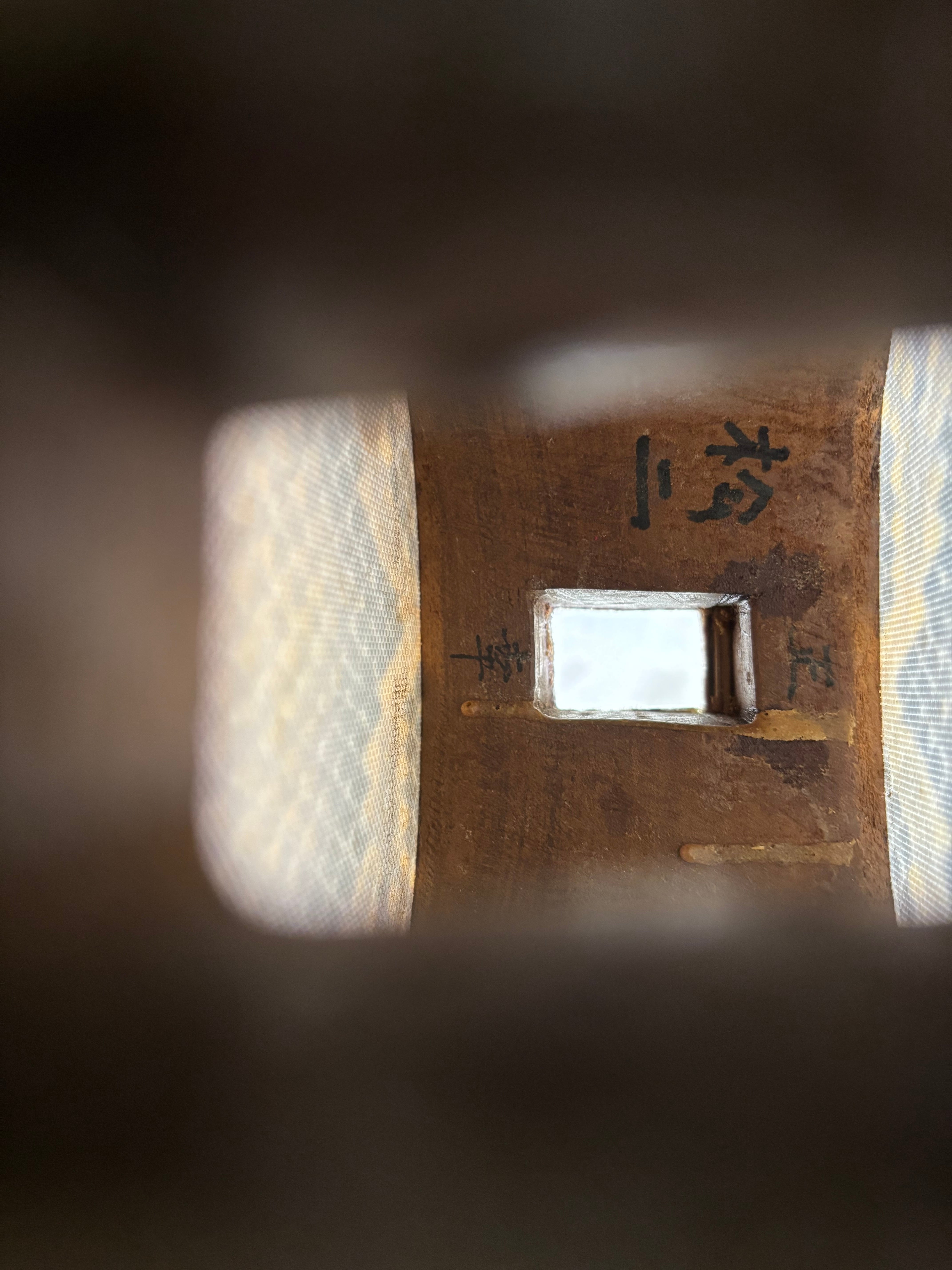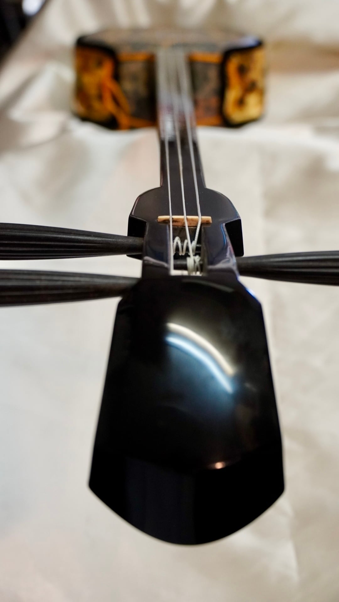 昭和中期頃作の八重山黒木四つ割材使用の江戸與那城三線。東恩納寛惇先生が戦後に奇遇にも見つけた江戸與那城三線(現在県立博物館蔵)三線を基に製作された秀作。丸みを帯びた天 柔らかな鳩胸 糸蔵の穴あけと、細部にわたり実に丁寧に仕上げられている。この存在感を味わいながら古典音楽の実演に用いたなら、これからの歌三線の道を歩む為の相棒になることは間違いないでしょう。当時物の艶消し漆塗りで、稍使用感はある。後年に人工皮へ張り替えられているが、古いチーガは健在であるため、これを破いて本皮は張り替えよう..などとは考えにくい。この状態を保つ意外にも、新らしく本皮チーガを準備し組み上げるのがベストである。芯鳴りという言葉に相応しく響き良し。棹に捻りなし正常。江戸与那城特有の野面の丸みは、手に取った際の感触良く、演奏を考慮して造られた一級品であると感じ取れる程である。今回の機会に是非ご検討いただきたい一丁です。ご希望の方には本皮張りチーガをしますので、組み立ててお取り付けもサービスで行います。他質問などありましたらお気軽にお問合せください。送料込みでお届けいたします。何卒宜しくお願い申し上げます。https://ameblo.jp/34doumakiya/